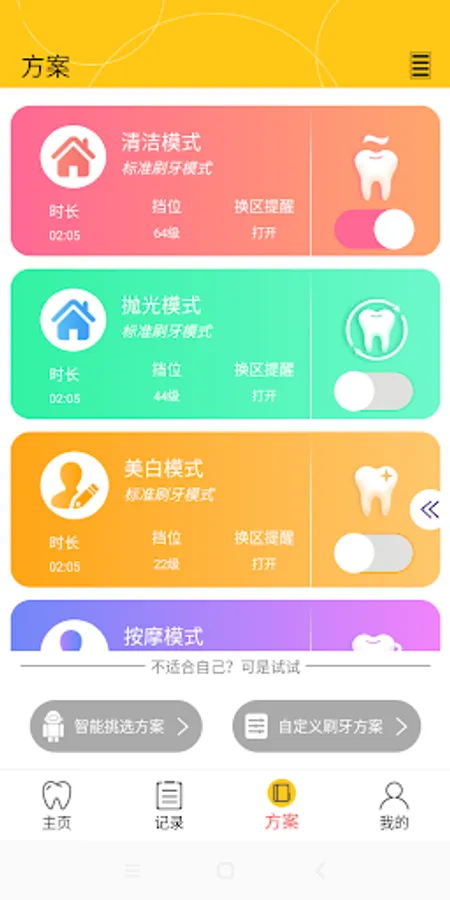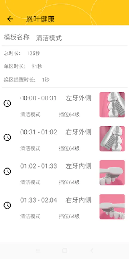 Enye Health connects the Enye Bluetooth toothbrush via Bluetooth Low Energy (BLE), monitors the power of the toothbrush in real time, and prompts the user to charge it in time for easy use at any time. And regularly prompt the user to replace the toothbrush head to keep the toothbrush clean at any time. And can offline record the user's brushing time, duration and mode scheme (save up to one week), and generate a curve chart for reference. In addition, there are a variety of modes that can be switched, and the length of each brushing and the intensity of vibration frequency can be adjusted according to the actual needs and specific conditions of the user.