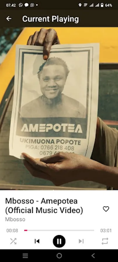 Amepotea Mbosso application is a music player application that presents completely and for free.