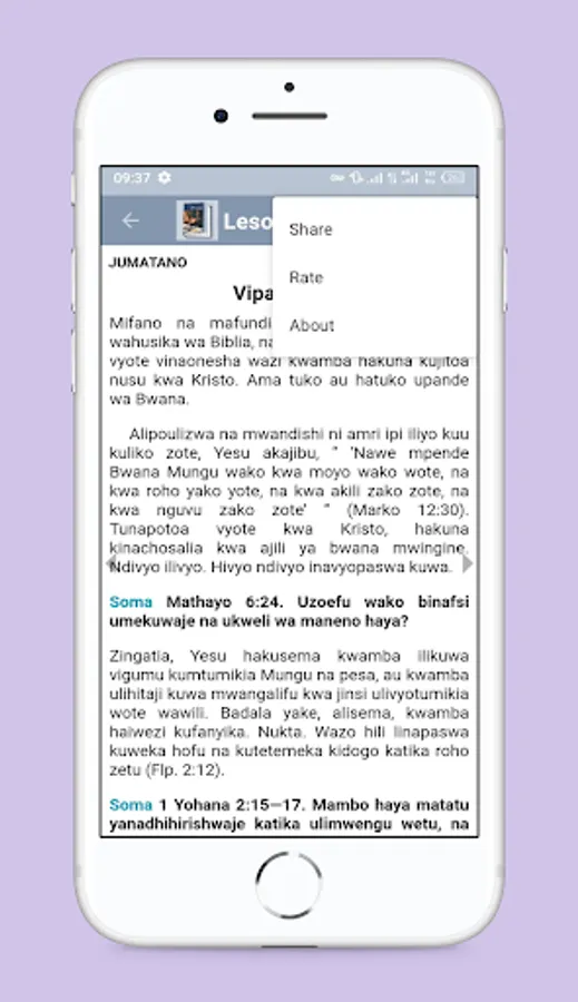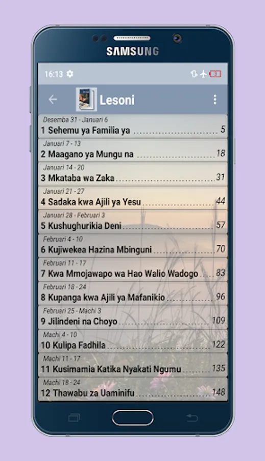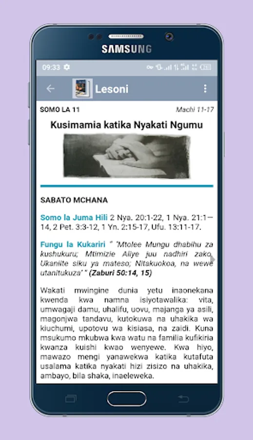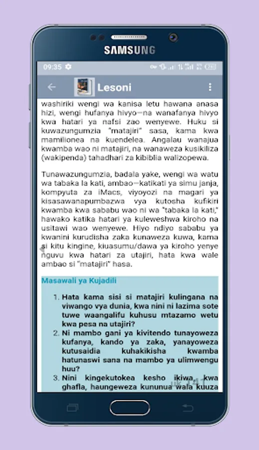Application ya simu kwaajili ya kumwezesha mtumiaji wa simu ya mkononi au tablet kupata masomo ya Lesoni (Mwongozo wa kujifunza Biblia kwa watu wazima) sawa sawa na mtu mwenye nakala halisi (real hard copy)
