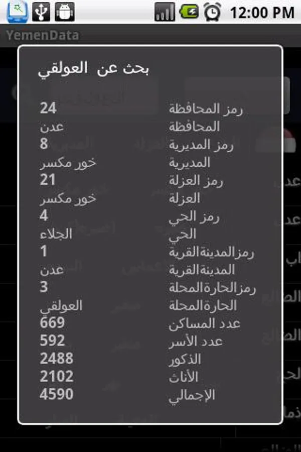 The application allows to search a database of Yemen's census data to locate people's villages and cities by using the family name.
