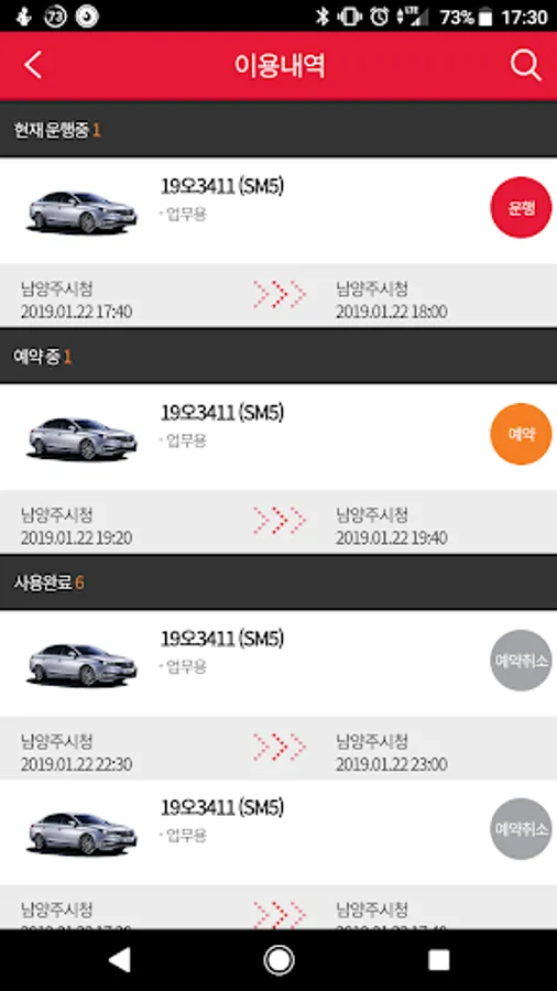 Namyangju City Hall's public vehicles can be conveniently reserved/approved through a smartphone, and the efficiency of operation management has also improved.