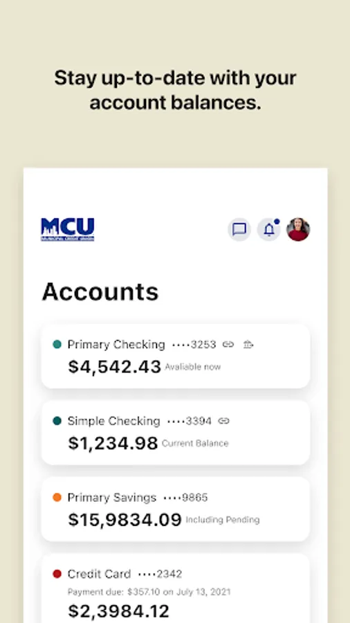 Municipal Credit Union's free Mobile Banking app brings the convenience and dependability of a credit union to your mobile device. You can access and manage your accounts, make deposits, locate ATMs and more.