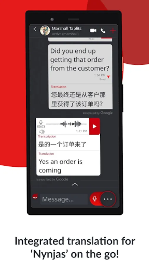 In the car? Take a voice note and Nynja will translate it into text. Need to add someone to your group chat? One tap adds your team members. On an international trip? Seamlessly integrated in-line translation tools have you covered. So put Nynja to work for you today!
