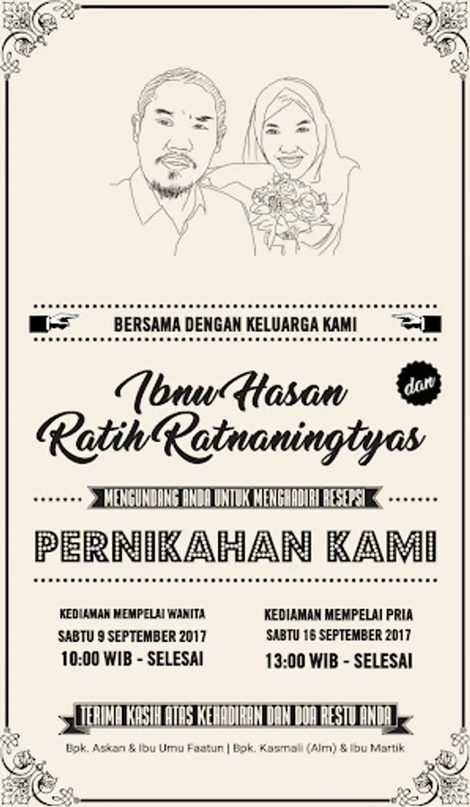 Dengan memohon Ridho serta Rahmat Allah SWT, kami bermaksud menyelenggarakan Resepsi Pernikahan kami:
