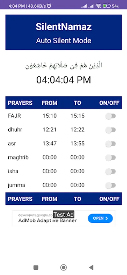 β Customizable for Each Prayer: Choose different silent durations for Fajr, Dhuhr, Asr, Maghrib, and Isha.