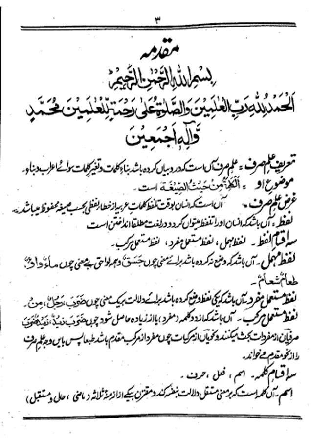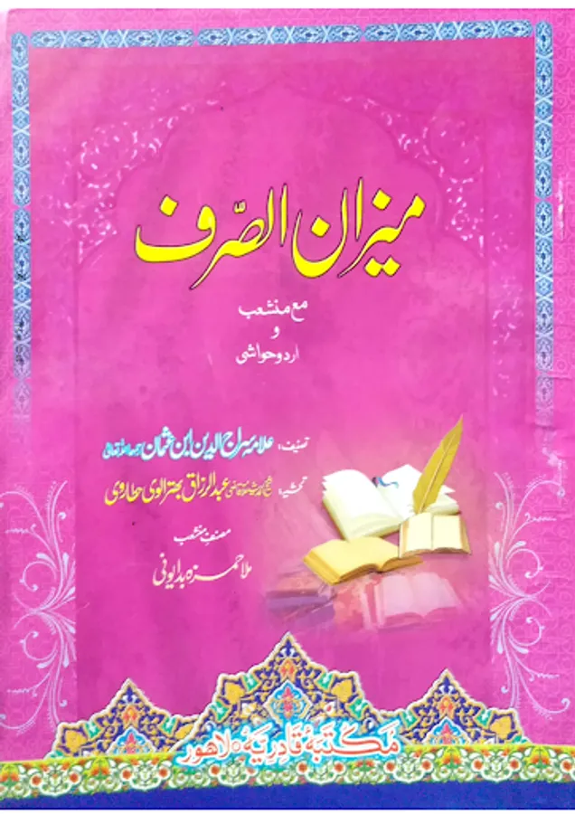 Meezan Us Sarf is the basic Arabic grammar book known as mother of Arabic language.It is actually written in persian. It is a must learning book for learning Arabic language. It is often translated as ‘morphology’. The actual meaning of sarf is “the metamorphosing or changing of the ‘asl (base/root word) to many different examples so as to achieve meanings that could not otherwise be achieved” The science of sarf is mostly relegated to verbs and that which derives from them. This change is done to stretch the meaning and to also make pronunciation easy upon the toque. An example of changing the meaning through sarf is manipulating the verb ‘nasara’. From ‘nasara’ we may derive the following: Nasara Nas’sara Naasara tanaasara anassara istansara mansar naasir munasar mansoor . All of these words come from one root verb - nasara. As for making it easy upon the tonque I will provide one example. Let us take the word ‘scale in Arabic. It is called ‘meezaan’. This word comes from the root verb ‘wazana’ which means to weigh. According to a principle of sarf the thing which is used to do this action will sound like ‘mif’aal’. If we were to apply this principle here the item used for the act of weighing would be ‘meewzaan’. Due to the difficulty found in pronouncing that upon the tonque we replace the ‘waw’ with a ‘yaa’ to make it easier. This simplification is broken down into set principles known in sarf. Properly applying principles of sarf can sometimes spell the difference between imaan and kufr. For example Allah said about himself in the Qur’an that he is ‘al-musaawir’-the fashioner. If someone was to pronounce the ‘waw’ with a fathah instead of a kasrah the word would mean ‘al-musaawar’-the fashioned one (the one fashioned by another). Of course the ignorant one making this mistake would be excused but this simply shows you the importance of sarf in the Arabic language.
