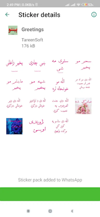 TSoftStikers (WhatsApp Stickers) provides amazing Pashto Greetings and Pashto Prayers Stickers for WhatsApp, as well as cool Emojis that will delight you and surprise your family and friends. With a few clicks, you can diversify your WhatsApp stickers, getting all the benefits of TSoftStickers. Our stickers range from all kinds of emoji, like smiling, laughing, angry, and loving.