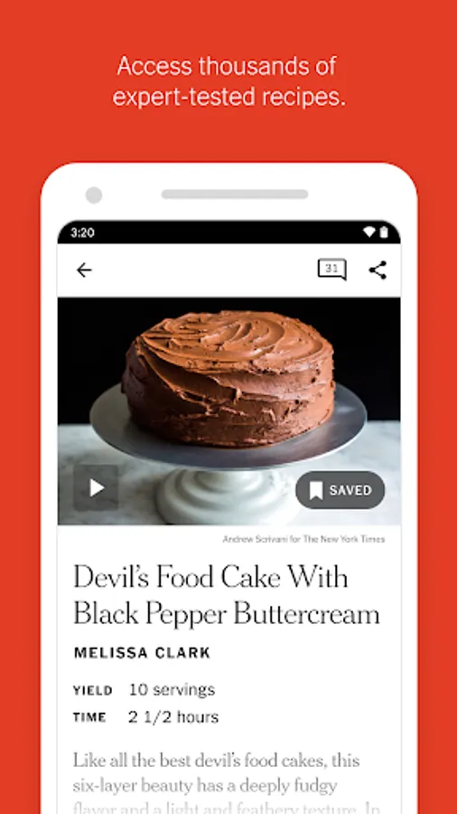 Introducing the NYT Cooking app for Android. Browse, search and save more than 19,000 recipes from The New York Times, featuring beautiful photography, and easy-to-follow instructions.