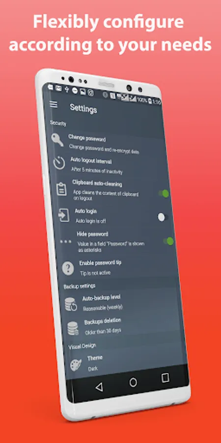For the sake of security, it is better to have different passwords for every website/service to make sure that your confidential and sensitive information is secured. Even if one of the website/service is compromised, all your credentials to other services will be safe as every of them has its own unique strong password. Using this password manager you will need to remember only your master password, all your other credentials will be safely stored in the encrypted local data storage. Privacy is our highest concern, that's why our password manager is fully offline solution, your data is stored ONLY on your smartphone or tablet, nowhere else.