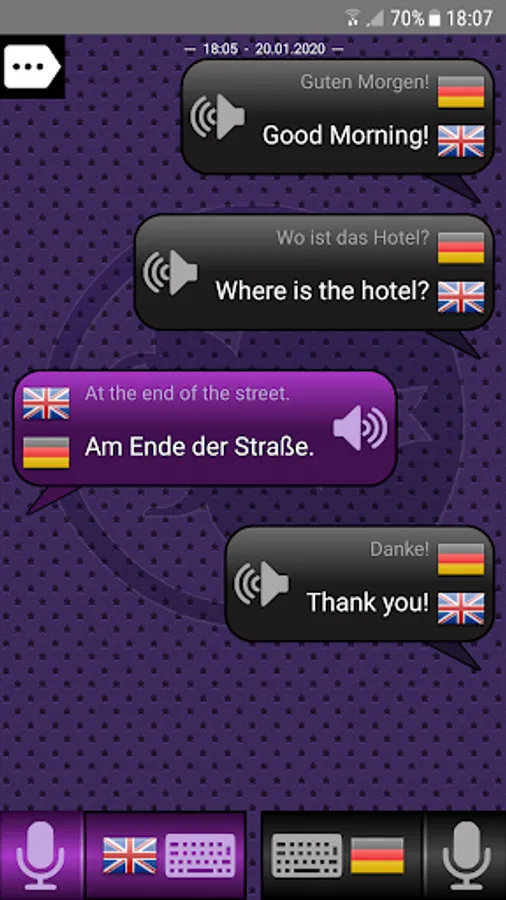 A language translator for conversations with foreign people with a chat-like style.