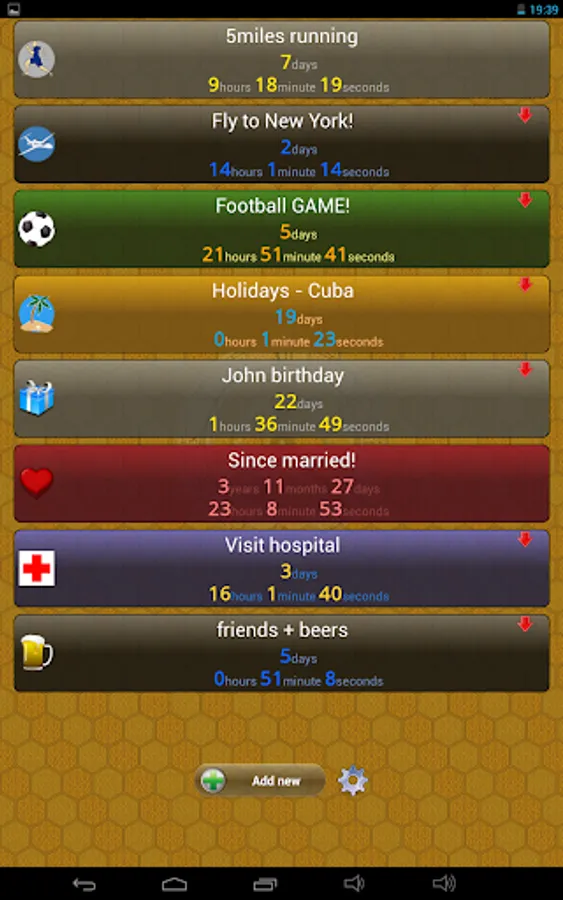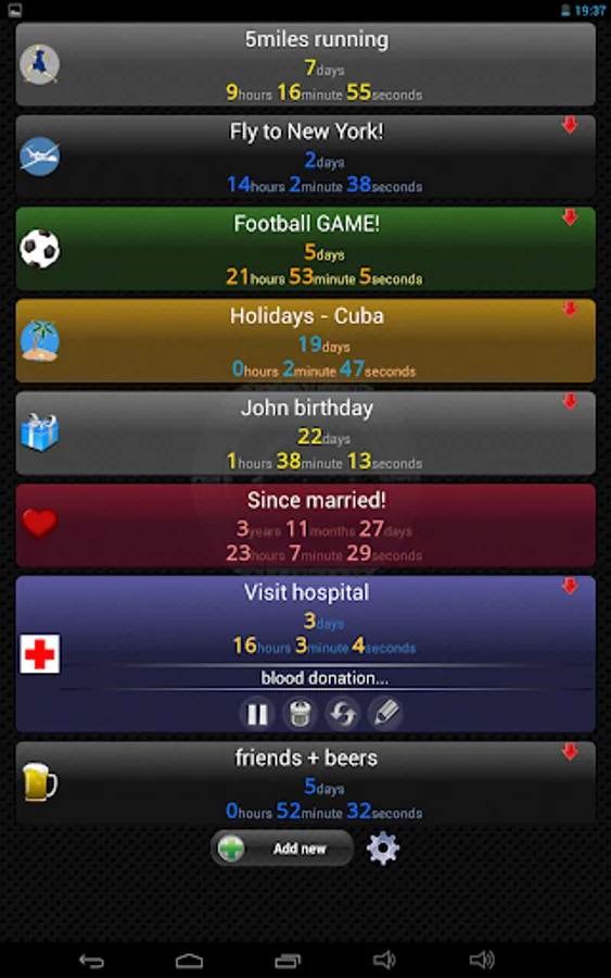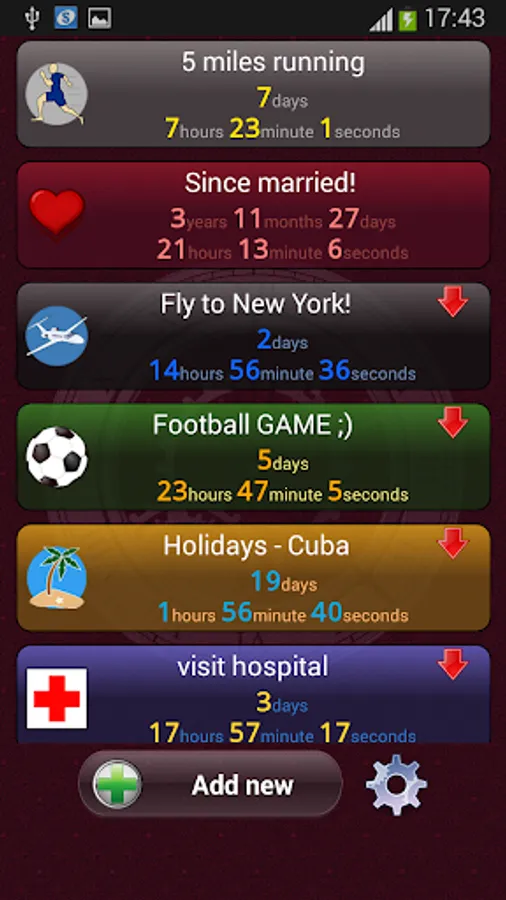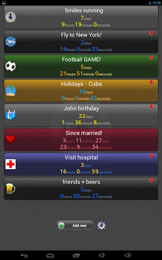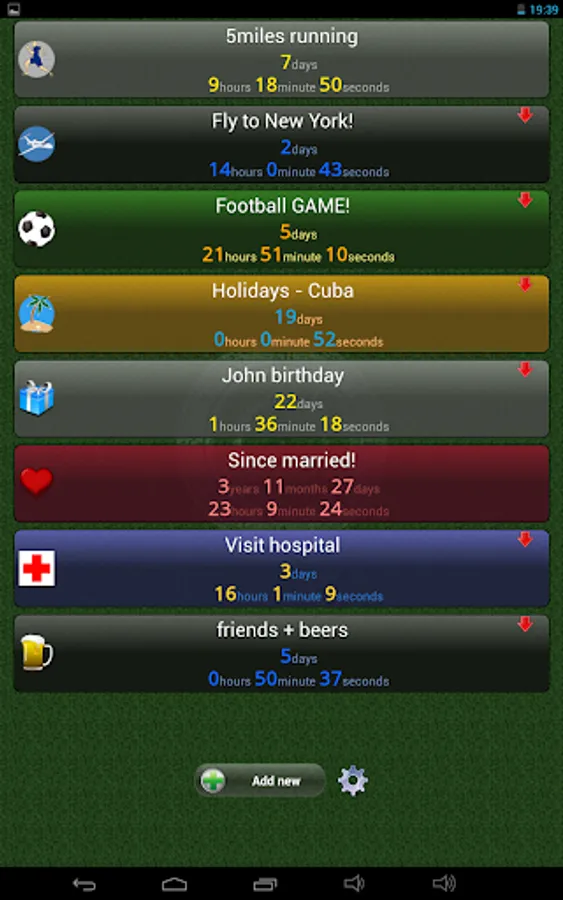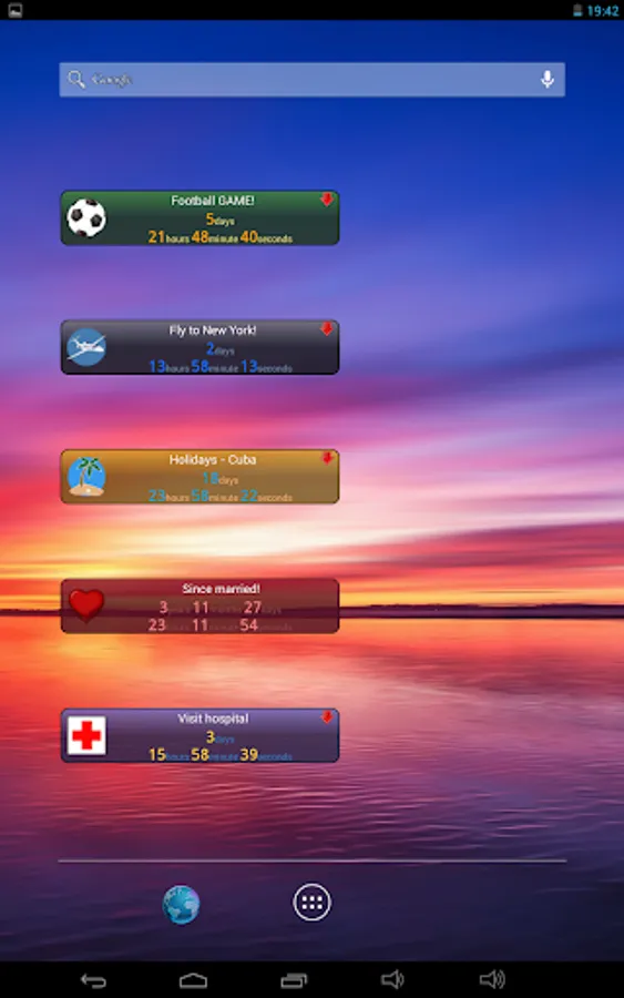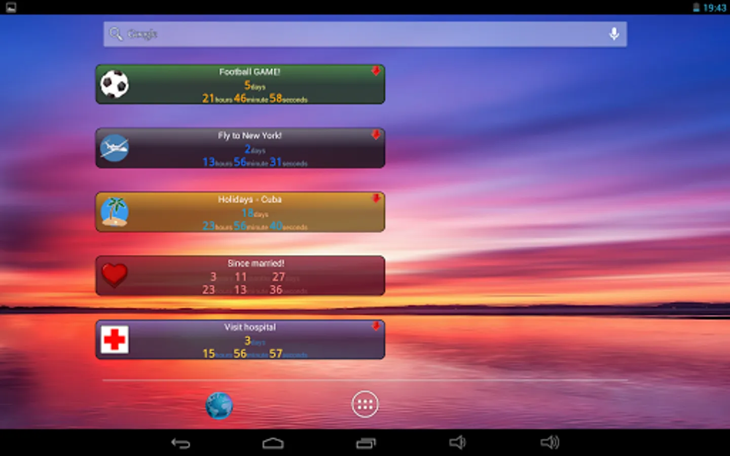 - Countdown until event, vacation, holidays, party, anniversary, birthday, wedding, wake-up, baby, sport event, retirement, football game, world cup, exams, army service, Christmas.