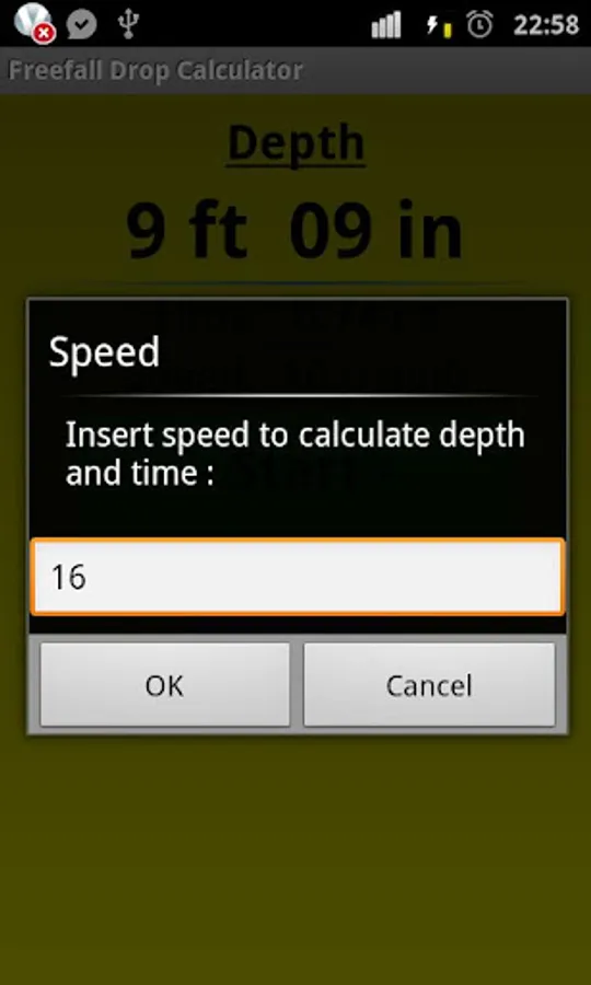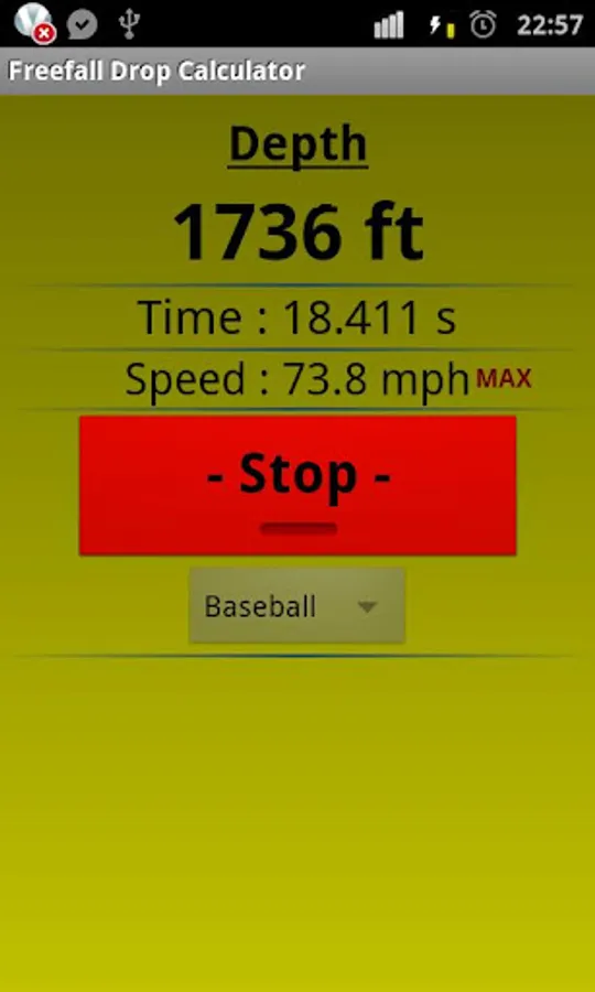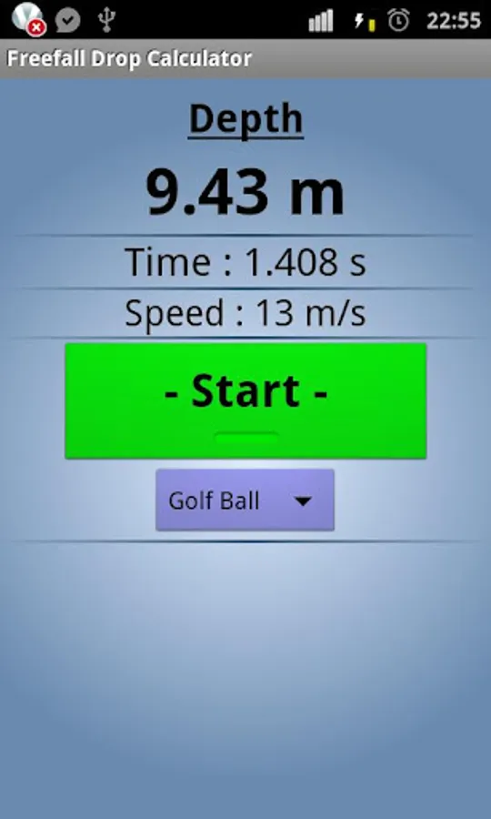 2. A calculator: by selecting the falling object and then pressing on Depth, Speed or Time to calculate the remaining values. You won’t find another app in the market that is able to calculate all three with air-resistance (or not).