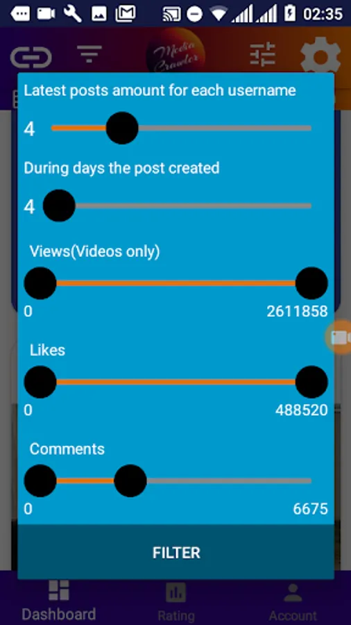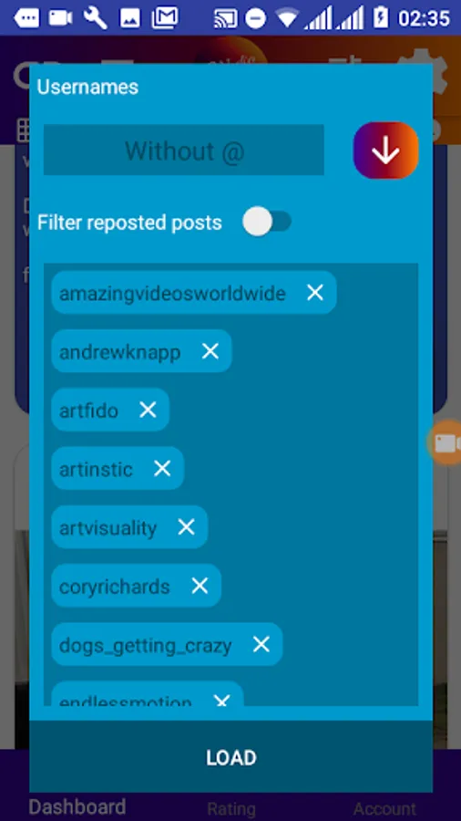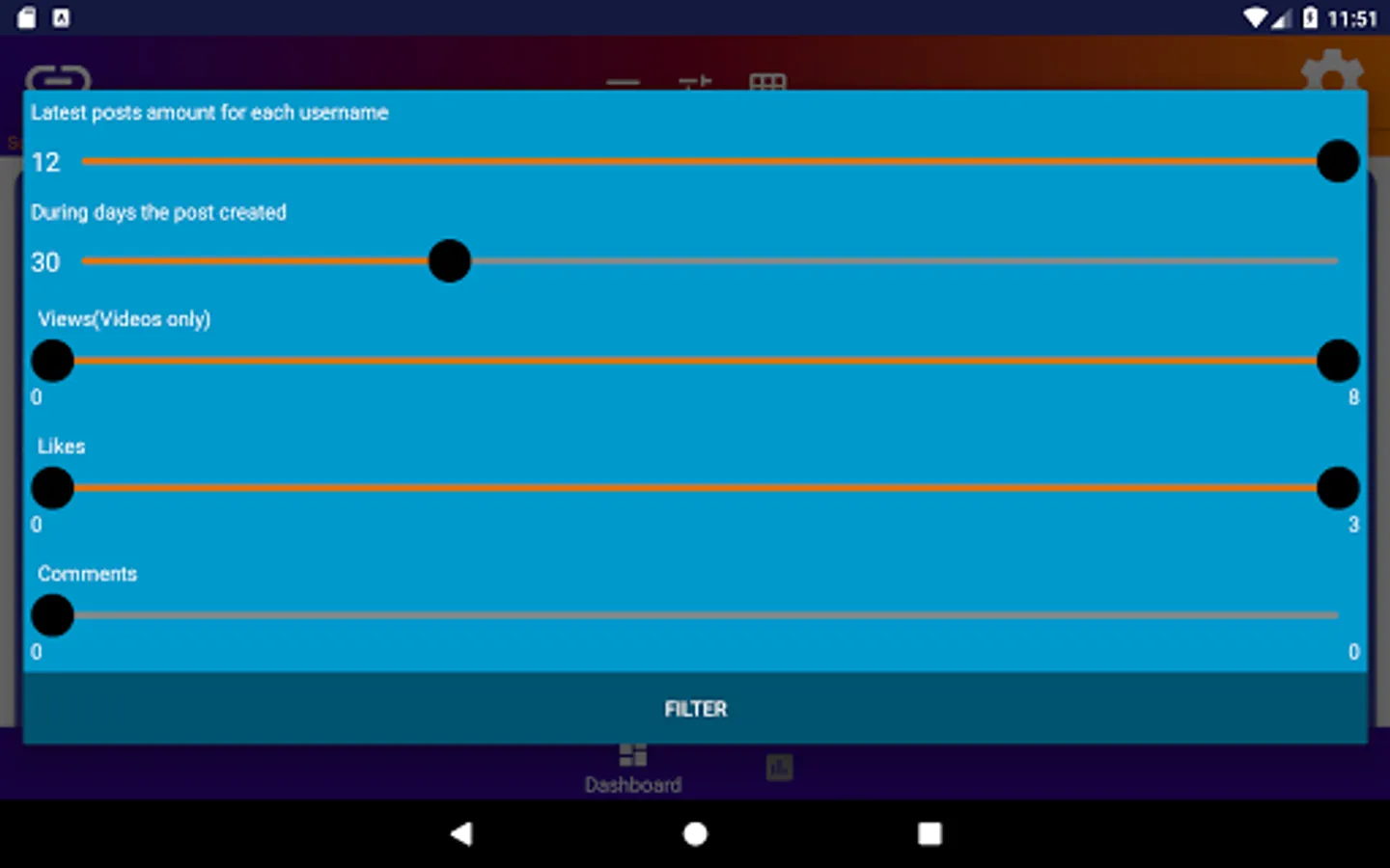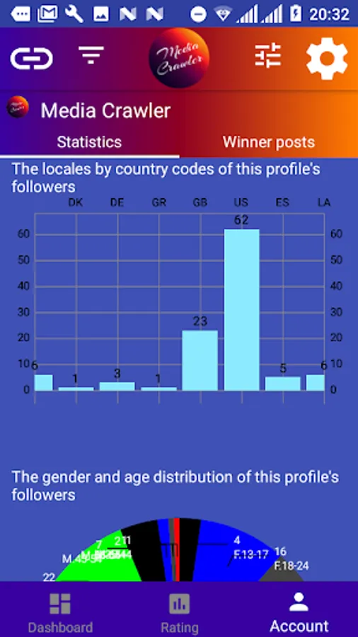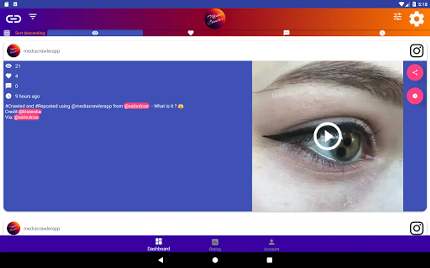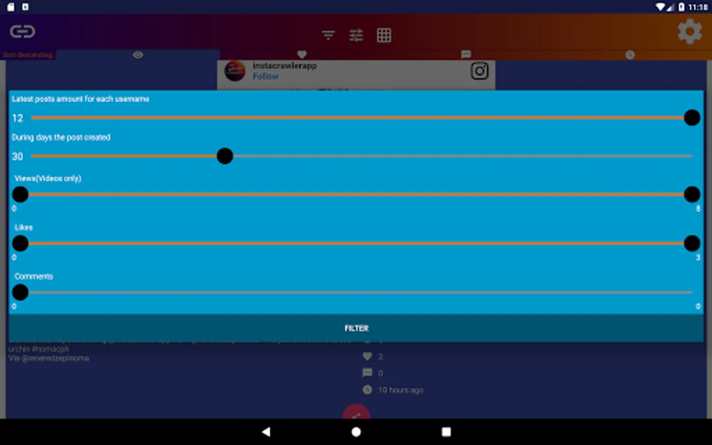 This app is an Instagram crawler and reposter that will help you to raise your blog's rating by analysing your Instagram blog comparing to other Instagram blogs. Also you can repost the posts relevant to you. Gathering statistics from Instagram, impressions, reaches, clicks, audience, rating raising and reposting.
