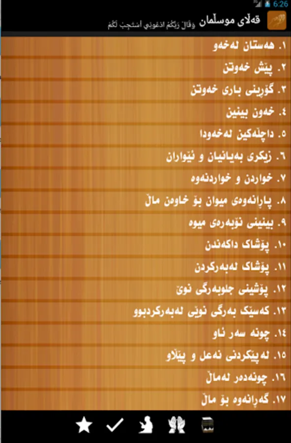 بهرنامهكه پێك هاتوه له ١٥٩ نزاو پاڕانهوه كه زیاتر له ١٠٠٠ نزاو پاڕانهوهی لهخۆ گرتوه.