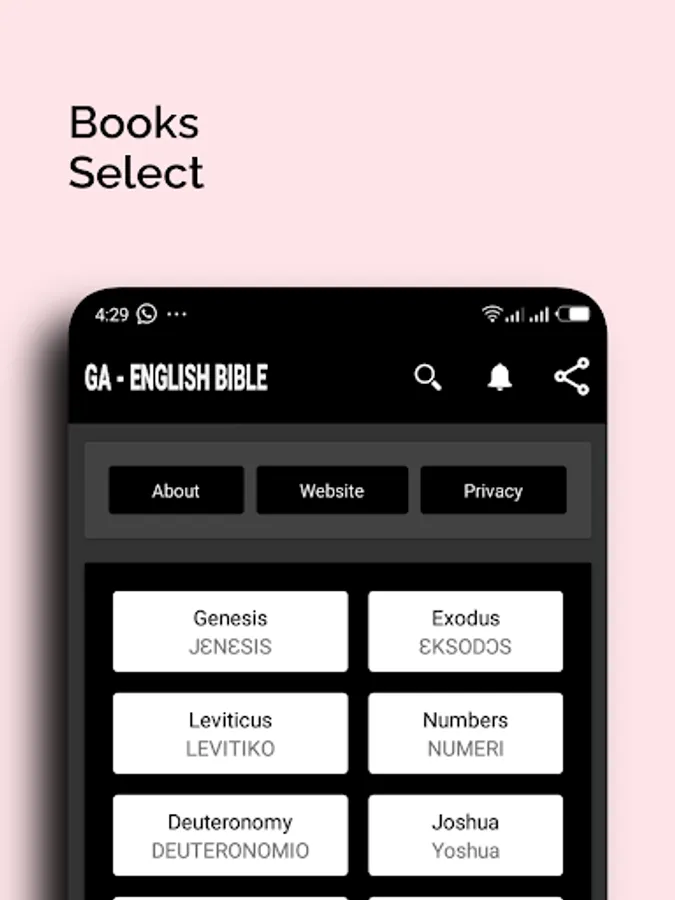 Find in this app also, a portable dictionary of the Ga language which make it easy to under specific words and their correct meaning in the biblical sense.