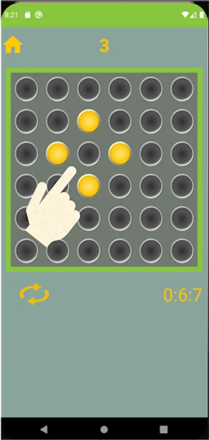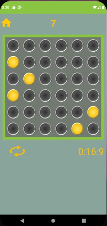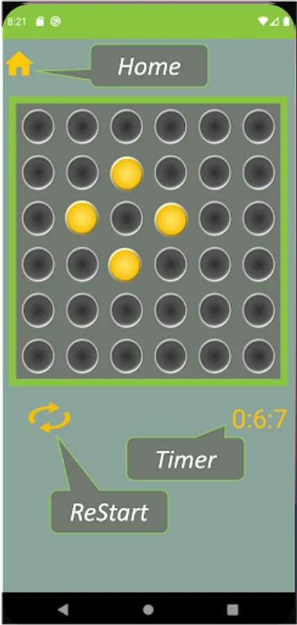 You have to turn off all the turned on lights by pressing the lights according to the game rule that in case you press any of the light the status of the surrounded light will change as well, the turned light can be turned off, the turned off light can be turned on and the pressed on light can’t be altered