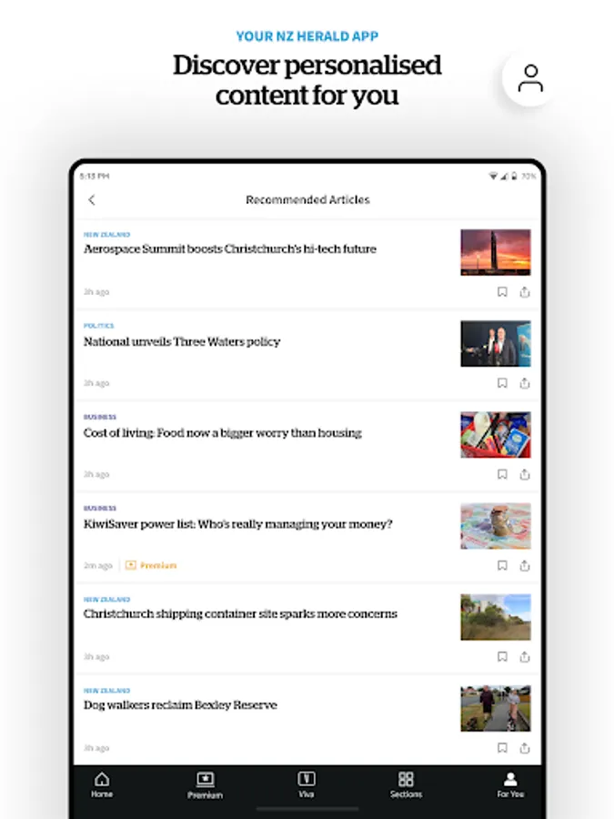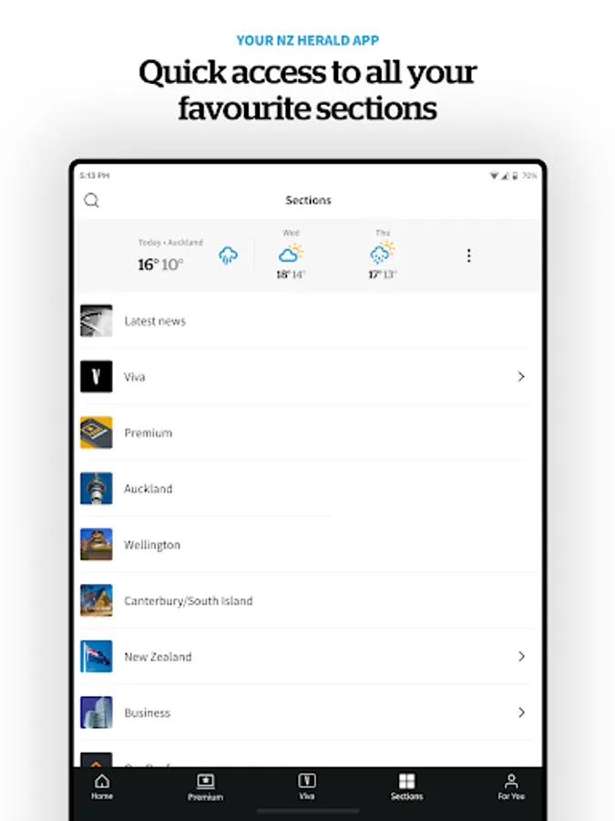 • View your favourite sections of the NZ Herald as well as NZME Regional titles