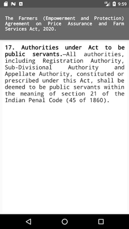 Note: This app gives the bare act in the form of a Mobile app. This app is only for training, educational, research and general awareness purposes only and we are not responsible for any of the legal implications of any kind. Please do your own research about the act and the app before using it.