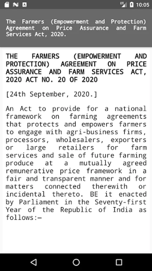 An Act to provide for a national framework on farming agreements that protects and empowers farmers to engage with agri-business firms, processors, wholesalers, exporters or large retailers for farm services and sale of future farming produce at a mutually agreed remunerative price framework in a fair and transparent manner and for matters connected therewith or incidental thereto.