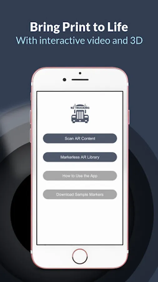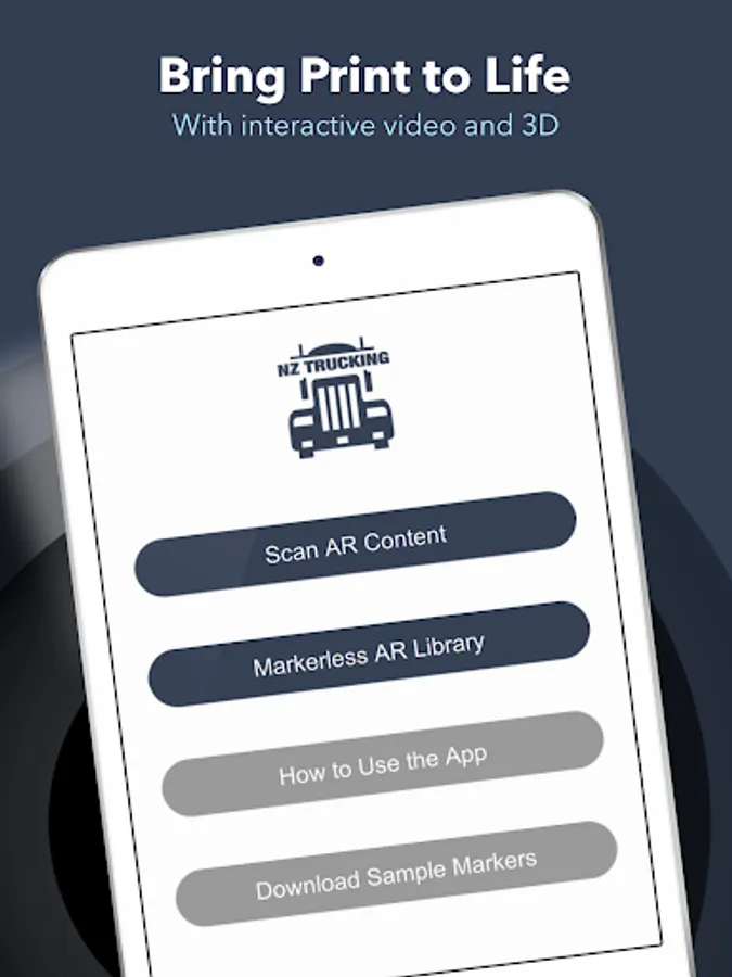 Download the NZ Trucking AR app and scan the augmented reality enabled markers to experience interactive video or 3D content.
