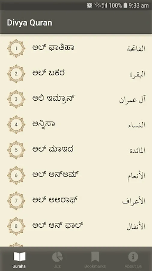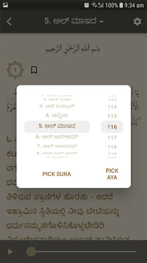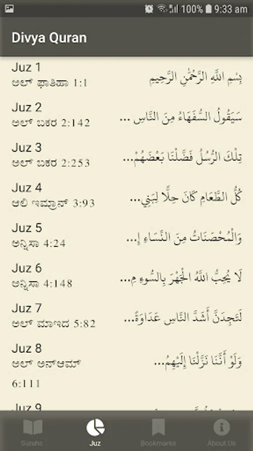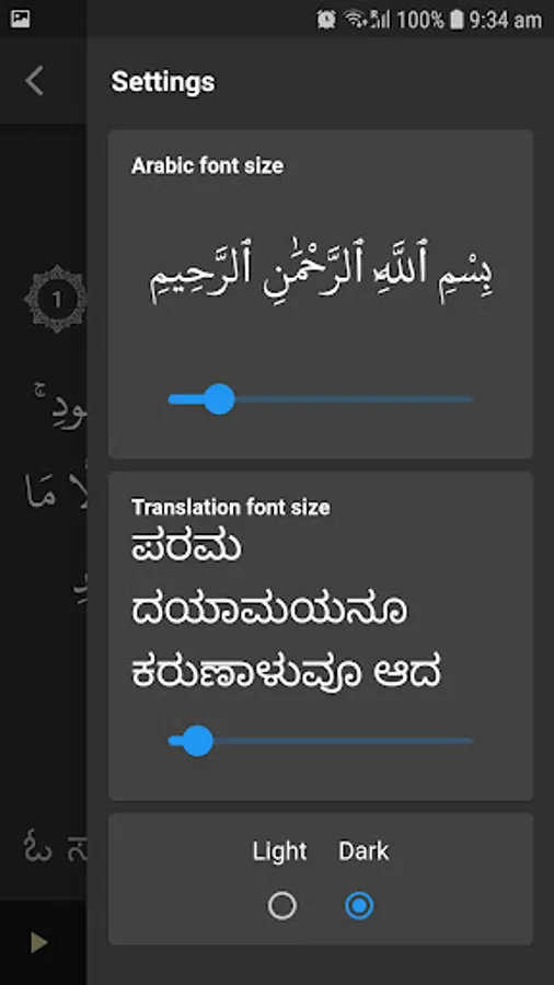 6. Personalize the Quran View (only Kannada/only Arabic/Both)