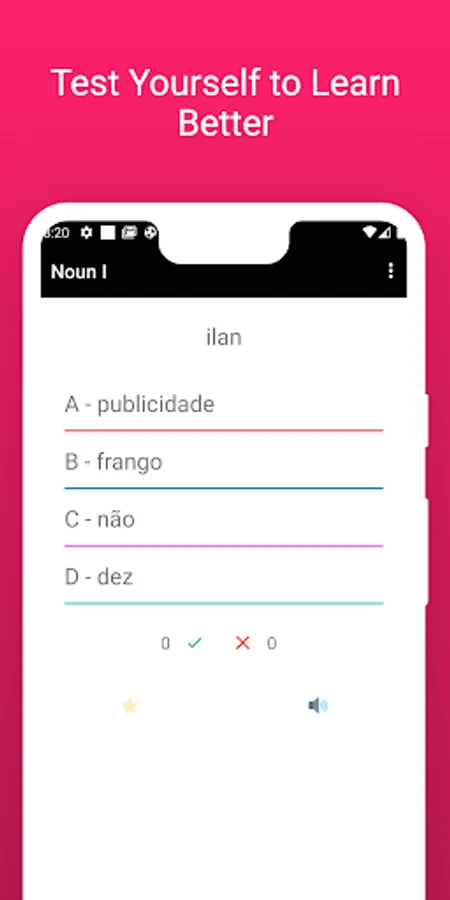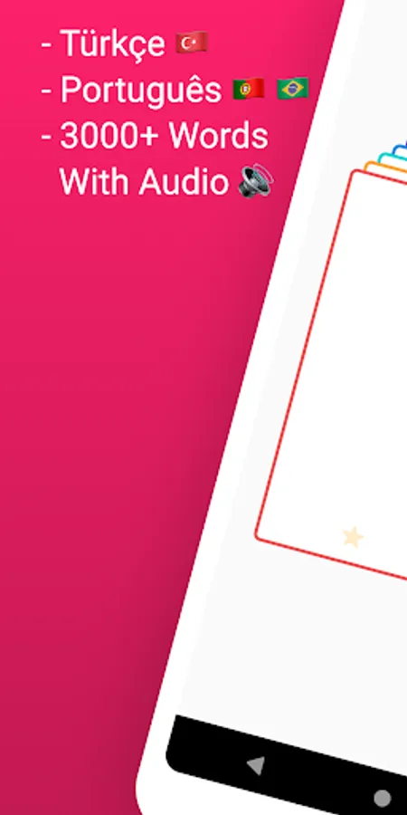 Our app will help you learn a new language easier. We made flashcards feature, it is easy to use and you can learn new words or review old ones. Just flip the card to see translation and listen the voice pronunciation of the words by tapping the speaker icon. You can switch the side of the cards and use it from Portuguese to Turkish or Turkish to Portuguese.