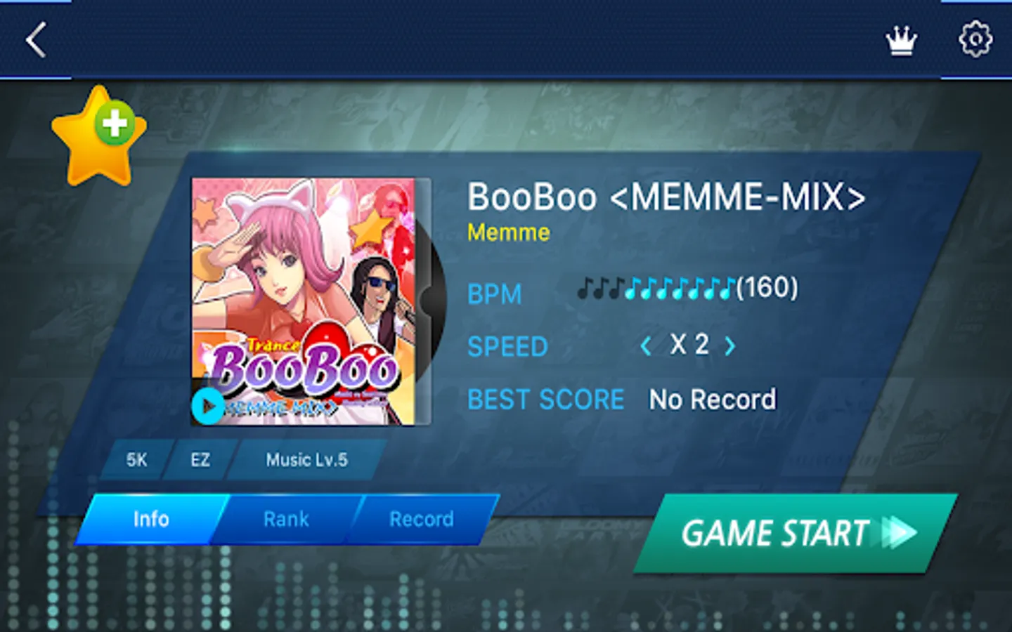 - Level selection of Easy, Normal, Hard, 3Key, 4Key, 5Key play per song