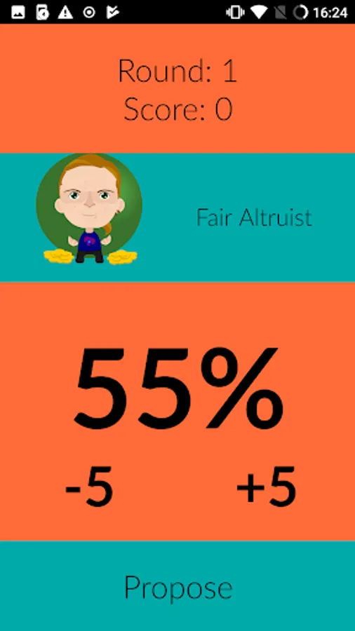 Reaching the highscore in this game requires you to learn the rules: you have 100 points to split every round. What does the rewarding egoist want? And how does he react when you give him too little?