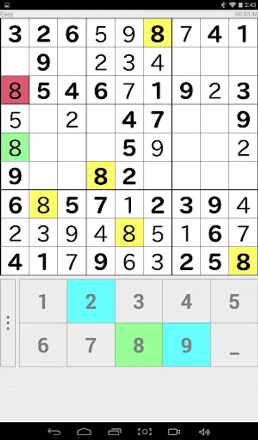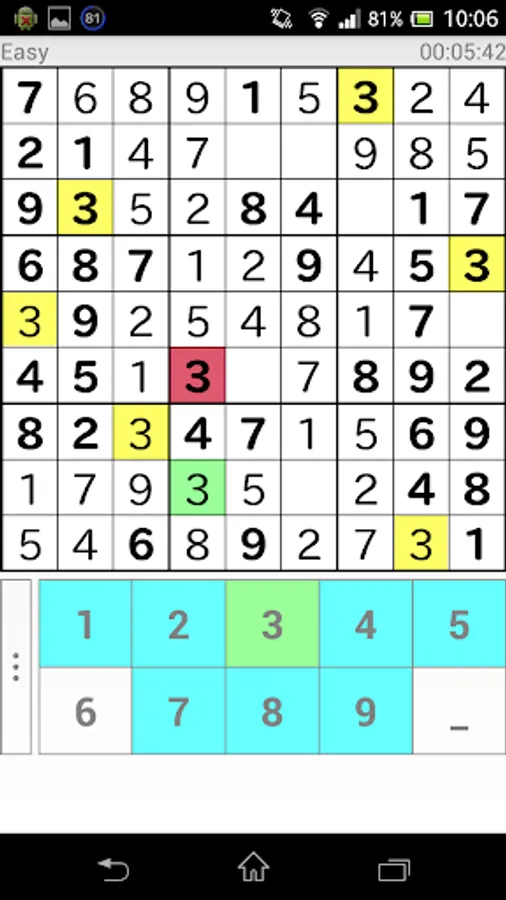 (3)And the numbers 1-9 must occur just once in each of the 9 sub-boxes(3x3) of the grid.