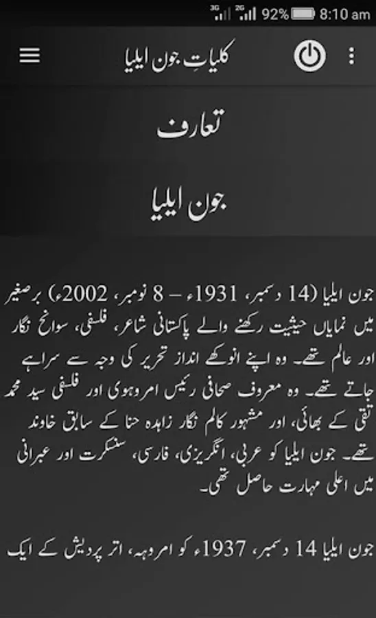 "Kulliyat E jaun Elia" is an app developed for the first time and it will make history in Books and references Apps.