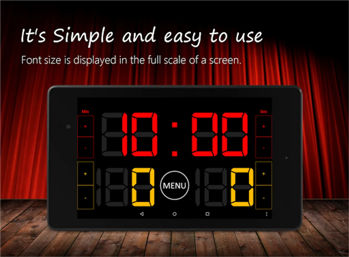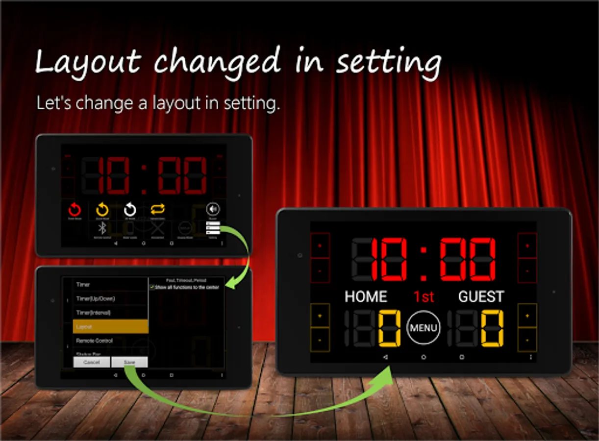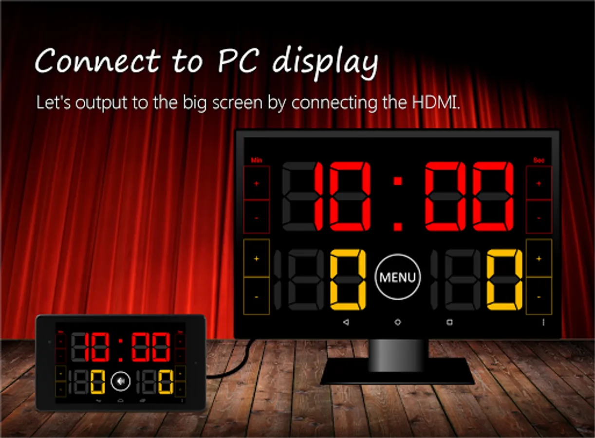 -Menu button, you can switch sides, reset score, reset timer, reset all, settings.