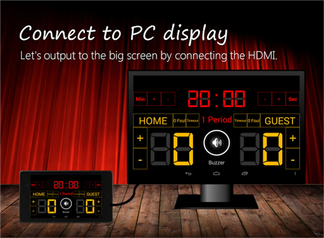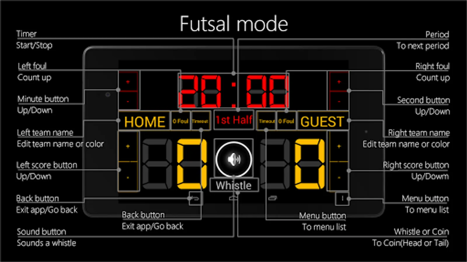 -Menu button, you can switch sides, reset score, reset timer, reset all, settings.