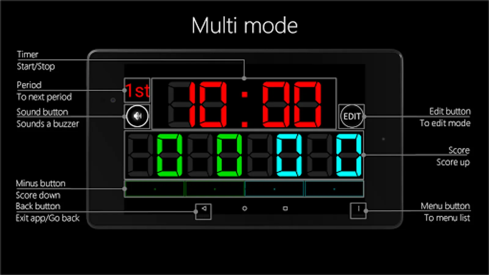 -Tap Timer: Start/Stop (Edit Timer: after tap EDIT button)