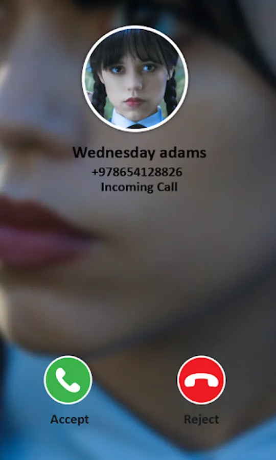 Now receive Wednesday Addams fake call and video chat from the series actress of Addams family member. Receive incoming prank call and fake video call like a real calling on the phone. Completely free prank calling simulator from the favorite character of the series. Just set fake caller id for Wednesday Addams for the prank call fun of the Wednesday. The prank call app is totally free for all the fans of this film from all over the world.
