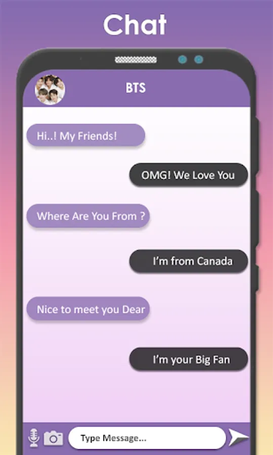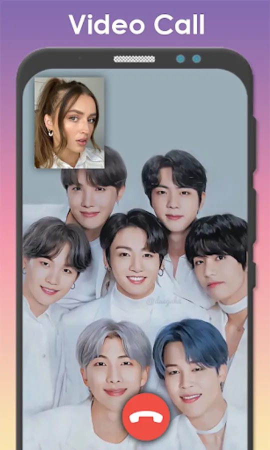 BTS Chat and Video Call Prank is an application that helps you get a call right away from Jimin, Hope, Suga bts, Talking to Bts, Looking at Bts members from the call. This application is free for all BTS Army to fake call, video call. Who is your BTS bias on the member RM, Suga, Jin, V, JungKook, J-Hope, JiMin BTS that you love.