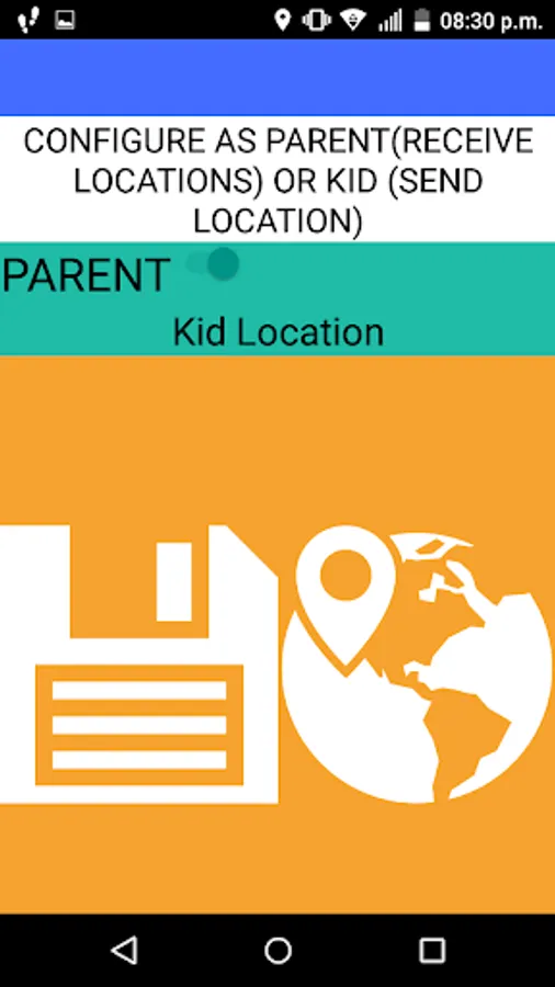 4.- Install app in your kid, family, or elder parent and create an account, configure this phone as kid location for example, then save icon. once is completed this phone will start to share GPS locations.
