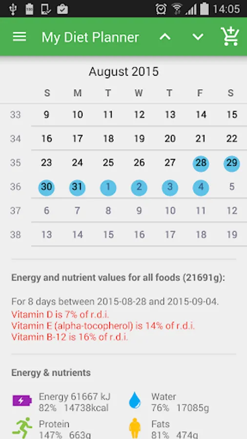 You will find information about things that you should have in mind when trying to eat and stay healthy. You can search for foods, see food nutrients, add to favorites, add your own foods, create your profile, track your diet and much more.