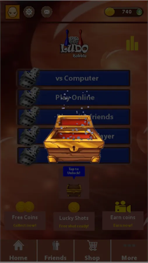 Ludo Bubble is a strategy ludo game having two and four player options that users can enjoy and win coins.In this game we have multiple options like play with friends,Online Multiplayer option and tournaments..