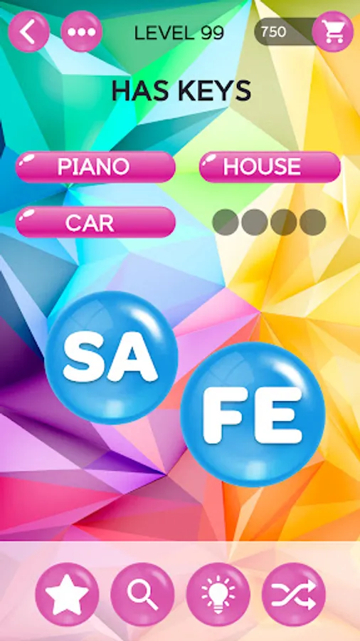 In the game basically, words are split into syllables and players need to connect words back together by using bubbles. There are plenty of engaging categories/levels. The words in each level are a part of a certain topic. Players should carefully think about words related to the topic to solve the puzzles. If some words are new to players, they can always look them up in the dictionary by simply tapping in this word game offline.