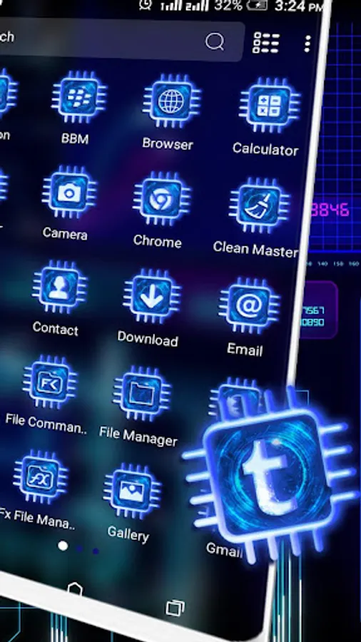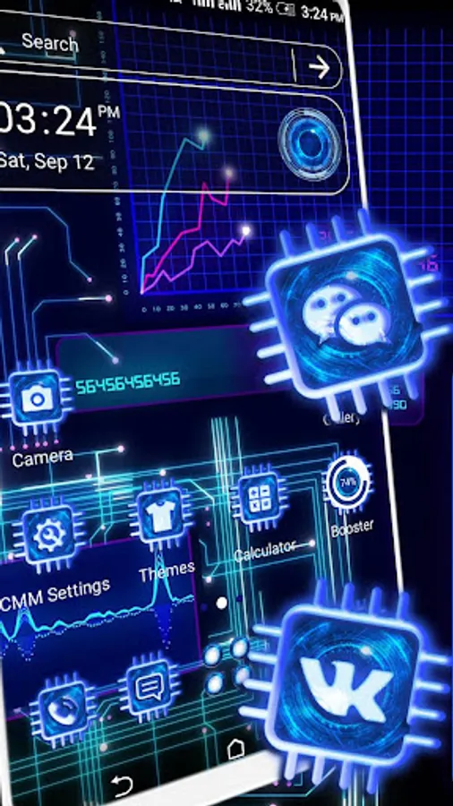 This theme is our latest free theme with Technology wallpaper and chips icons pack, designed for mobile theme fanatics. Come and download the Digital Hi-Tech theme now & more surprises are waiting for you to discover. It will make your Android mobile stay ahead of the trend.