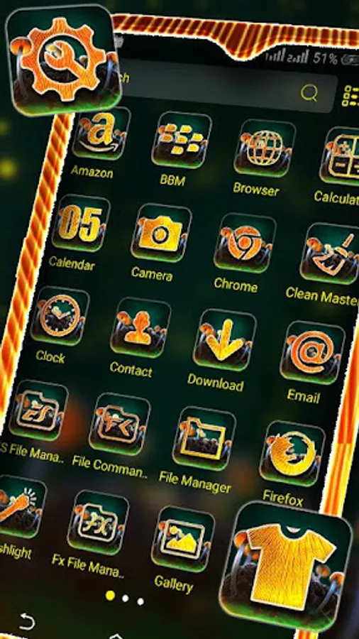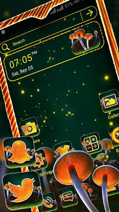 To apply the theme, please install our Launcher first. Apply it to make your phone fashionable, orderly and cool. The original app icons on your phone will be integrated by the special Mushroom Firefly theme. If you like other categories of themes, you can also find them in our themes Collection.