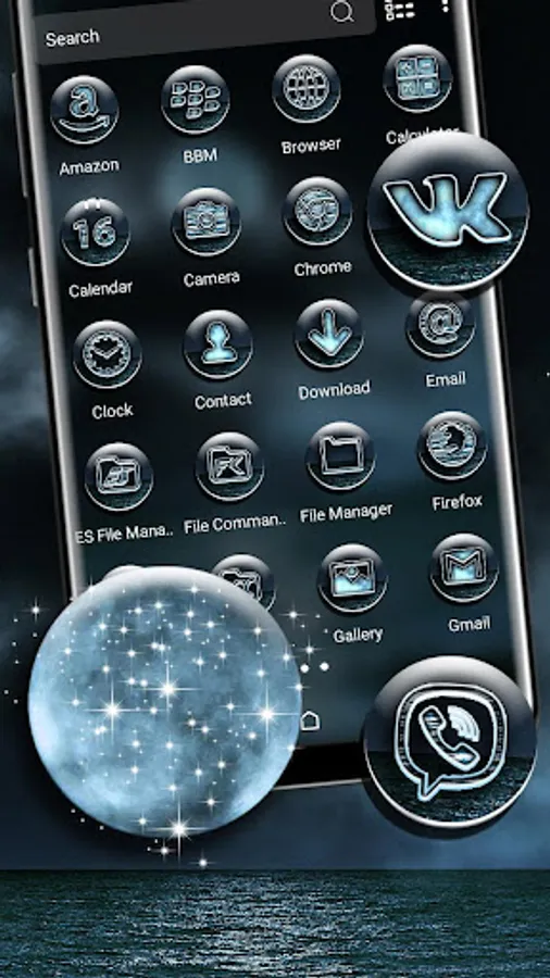 To make your phone stylish, apply new Ocean Moon Night theme with FREE HD Wallpaper and perfectly crafted icon packs.