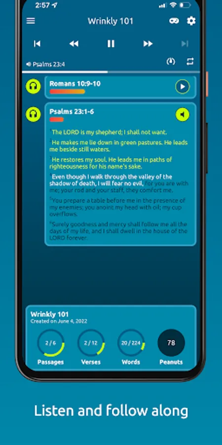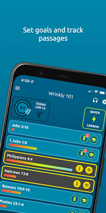 Wrinkly aims to make Scripture memory as effective and engaging as possible. Using multiple strategies for learning and memorization, Wrinkly is a fun and powerful tool.
