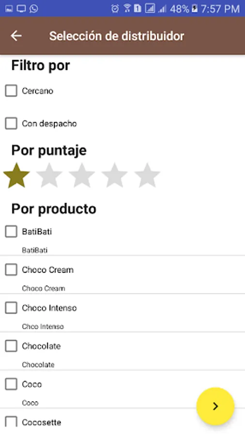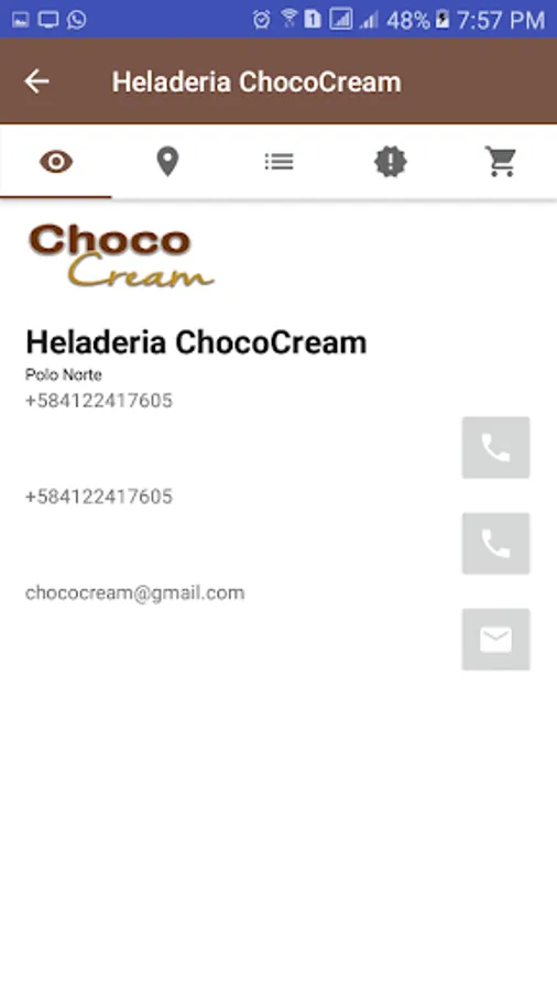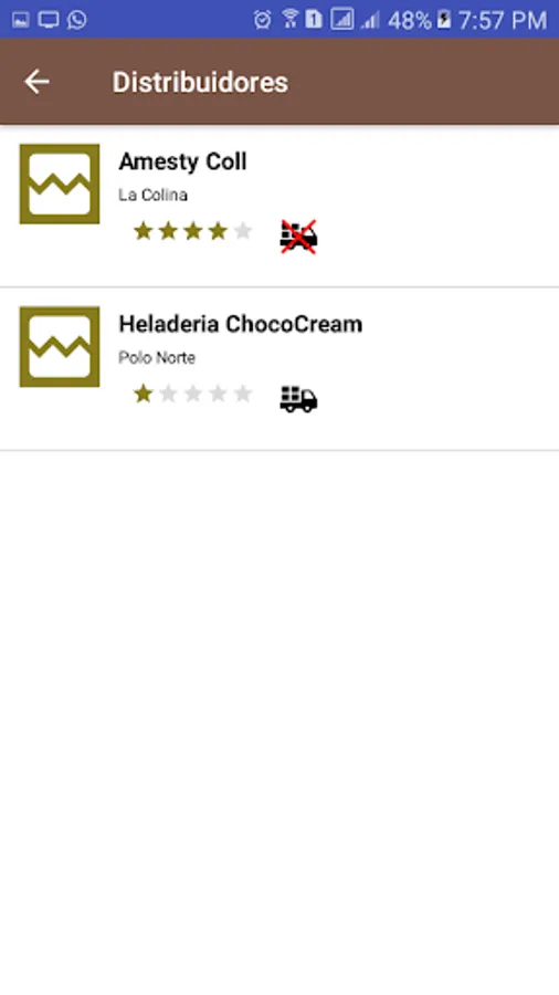 This application allows locating distributors of ChocoCream products through various filters, and presents the information of the selected distributor such as: location on Google Maps, inventory of ChocoCream products and own promotions.