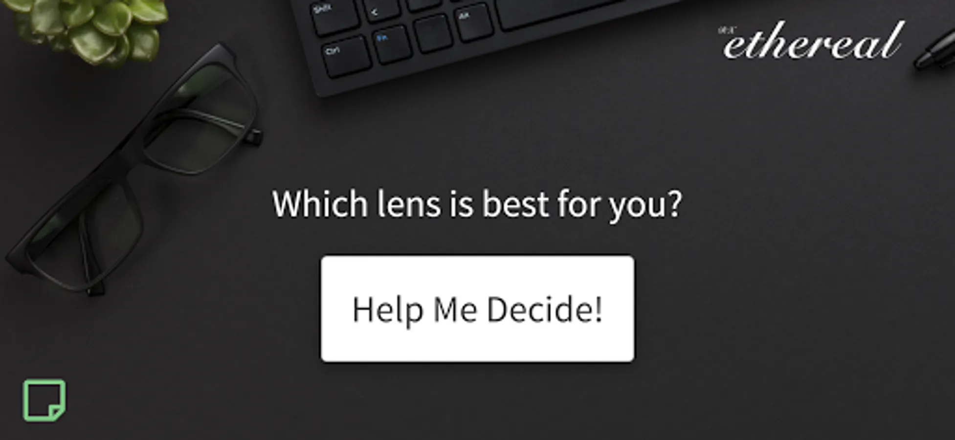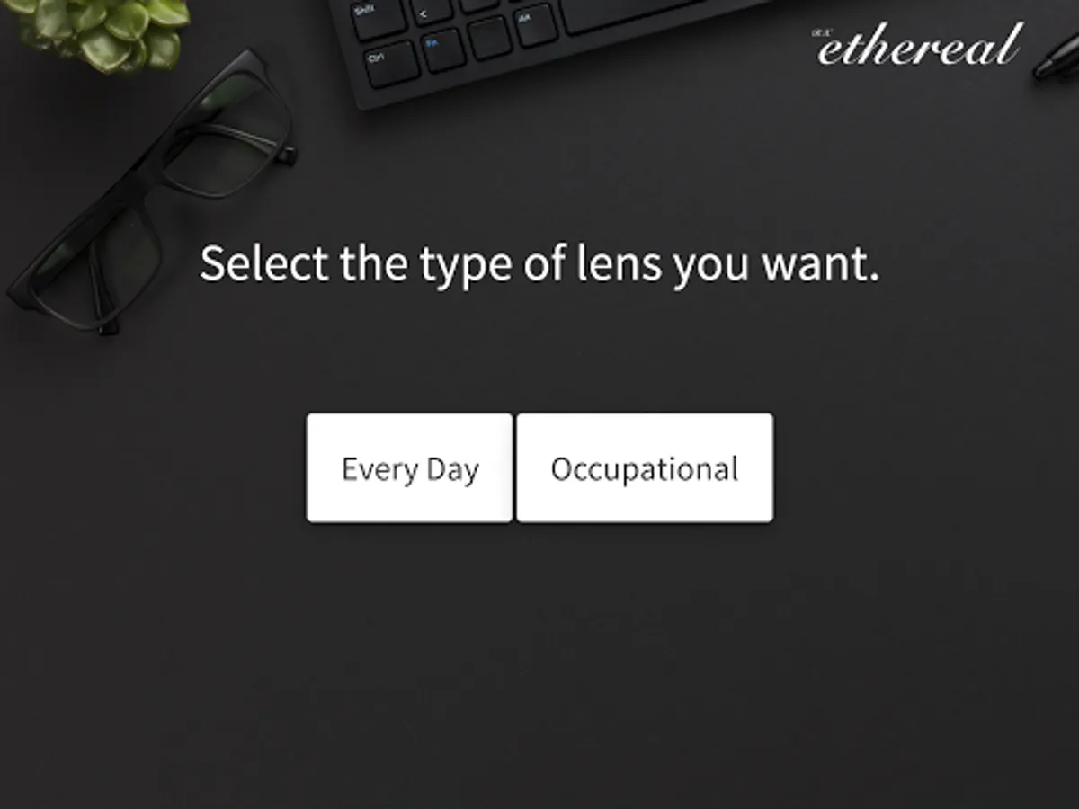 Simply enter your lifestyle choices in a few easy steps and the Ethereal Lenses App will select the choice of lenses best for you! You can then select which lens and view the distortion fields real time through your devices camera!