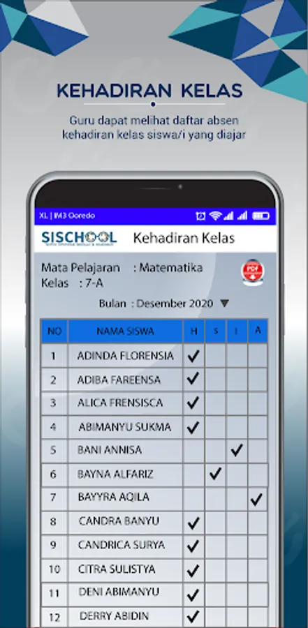 SiSchool Teacher is a school attendance application based on mobile phones where attendance information is stored in the cloud server so that data can be accessed mobile and realtime.