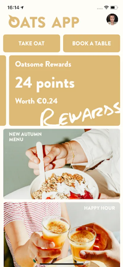 Preorder Oat based Food and drinks with the app and collect it from the counter. You can also collect points for every purchase or stamp for coffee purchase. Redeem your point or your full card of stamps ordering via OATS APP.