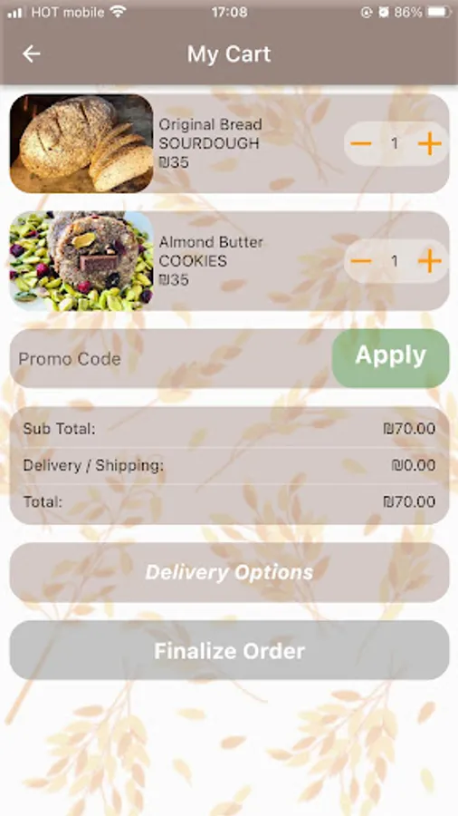 Through the OatYes app, you can easily and conveniently place an order for some delicious gluten free baked goods. All our products are oat based and contain natural ingredients and are free of gluten, dairy, contain no preservatives or flavor enhancers. Delivers to most of Israel.