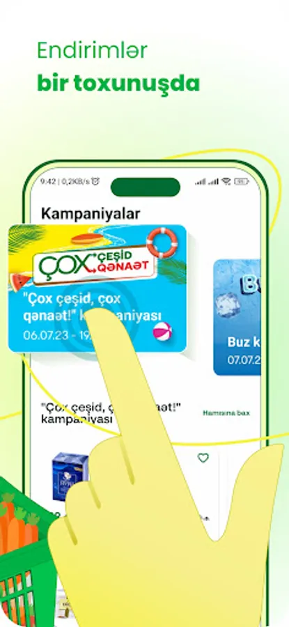 Proqramda endirimli qiymətlərlə tanış ola bilərsiniz. Həmçinin məhsulların kataloquna nəzər sala bilərsiniz.