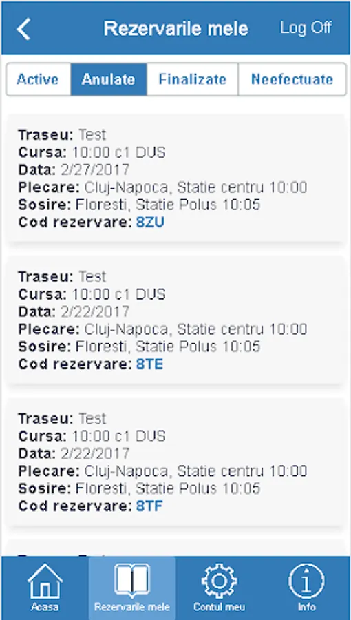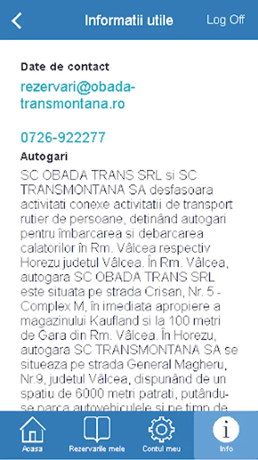 Aplicația permite rezervarea de bilete pentru transportul public de persoane pe cursele operate de ObadaTrans si Transmontana.